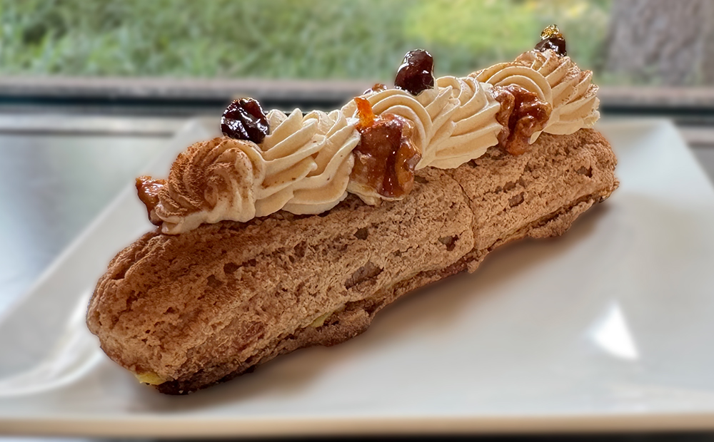 1位に選ばれました「りんごとキャラメルのエクレール」は審査員のアドバイスをもとに微調整を行い、10月1日から1カ月間、滋賀県内6店舗にて限定販売します。