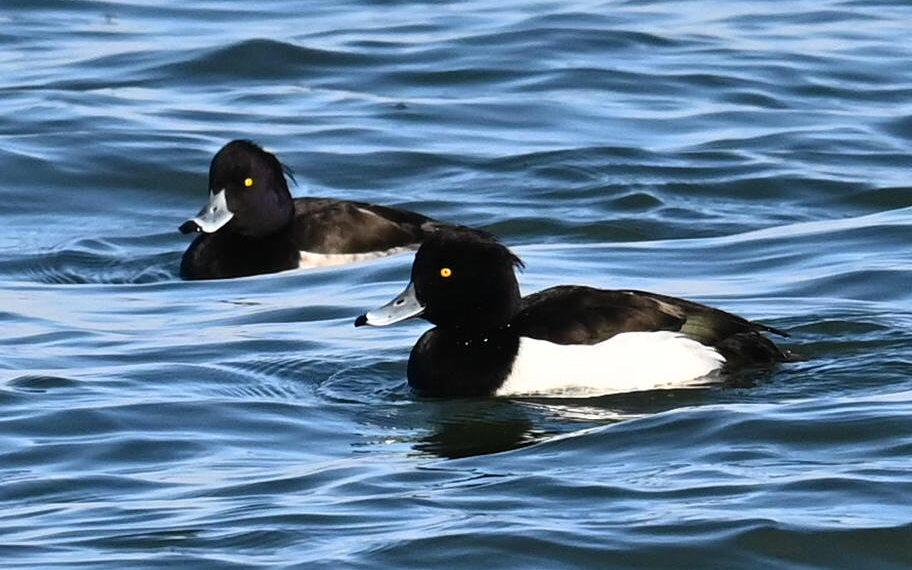 こちらは、黒と白のツートンカラーがシックな「キンクロハジロ」のオスです。