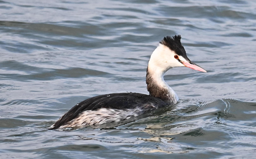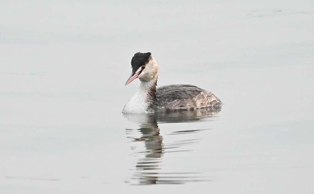 カイツブリの仲間、「カンムリカイツブリ」です。