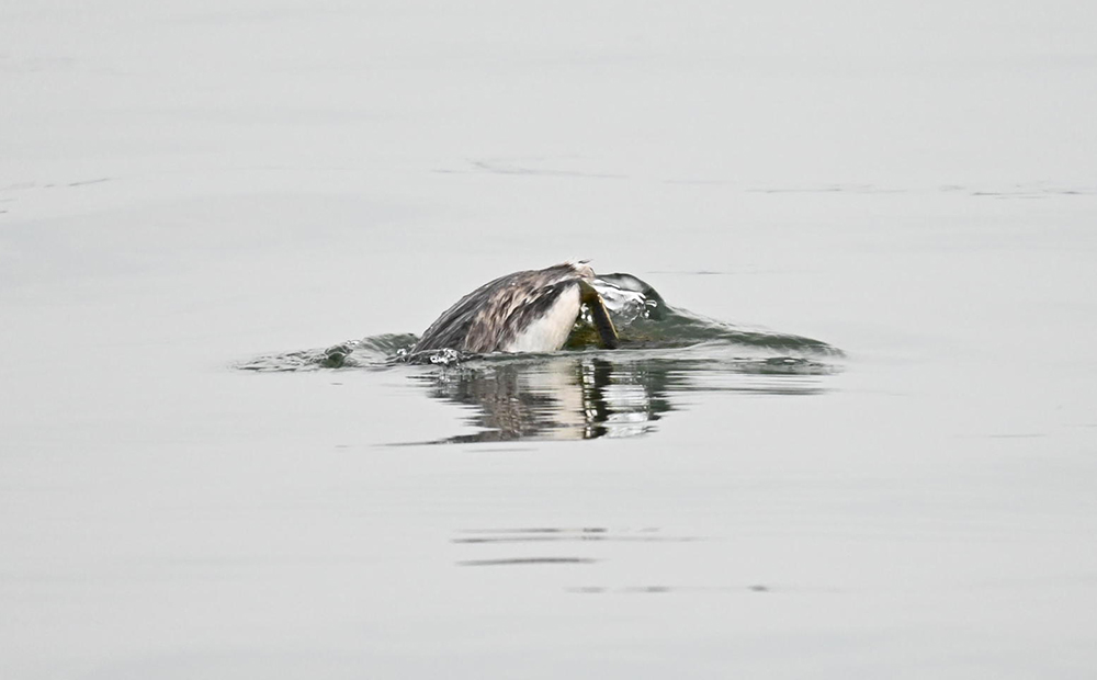 カンムリカイツブリもロシアや中国北部から冬鳥としてやってきますが、近年では琵琶湖でも繁殖が確認されているとのこと。
