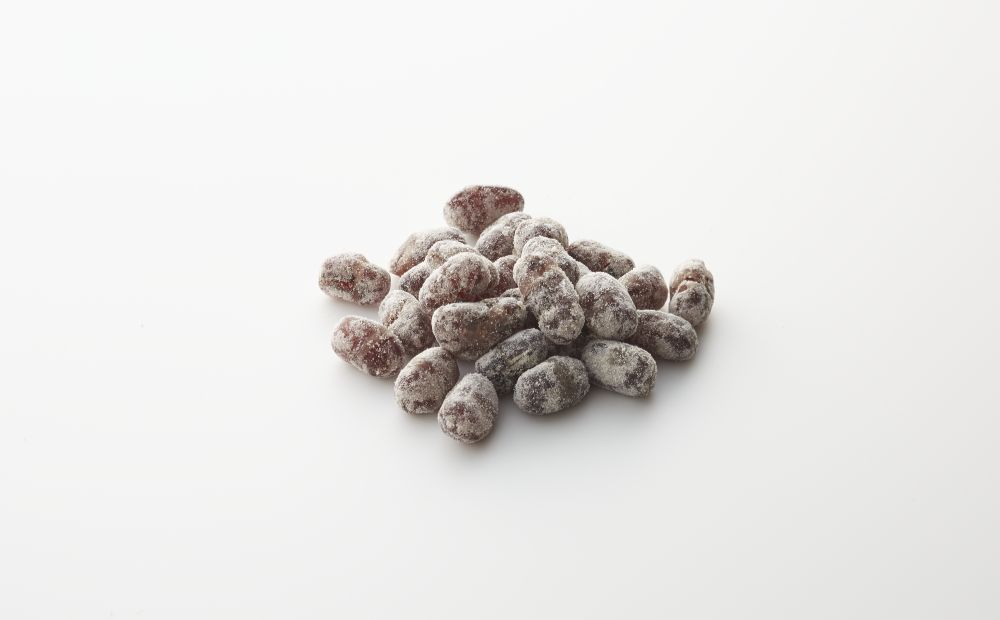丁寧に蜜漬けした甘納豆に和三盆をまぶしていただくお菓子です。節分らしい赤鬼の意匠でお届けします。
