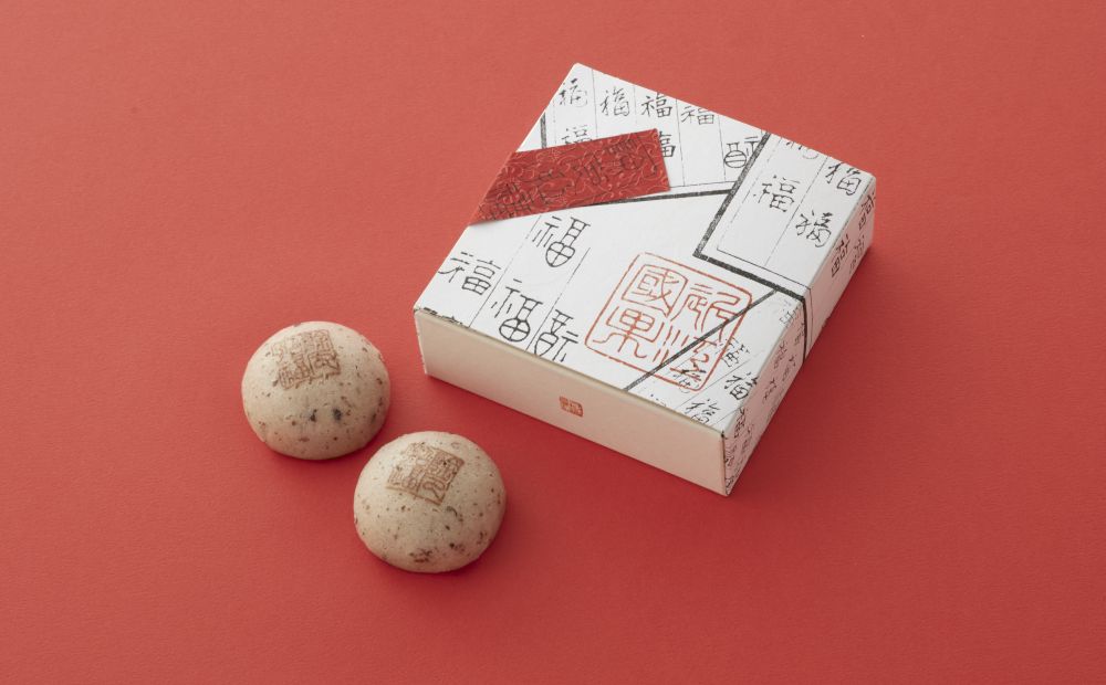 小豆を生地に練りこみ、粒餡を包んだ素朴なお饅頭です。天面には「除厄招福」の文字をあしらっています。