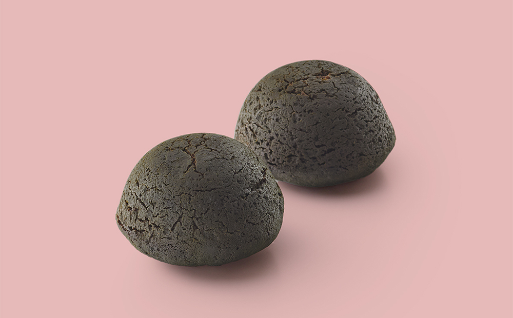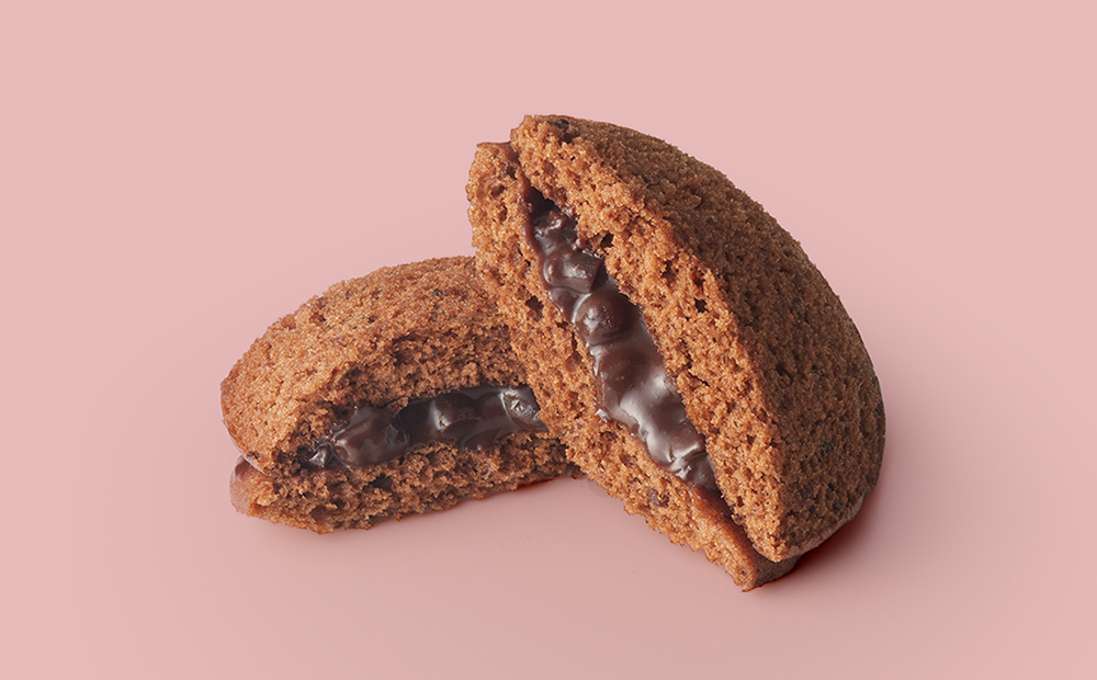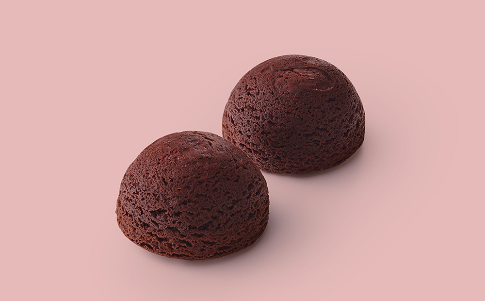 瑞々しい粒餡に濃厚なチョコレートガナッシュをあわせ、ふんわり蒸しあげた生地ではさみました。生地にくわえたカカオニブが食感のアクセントです。