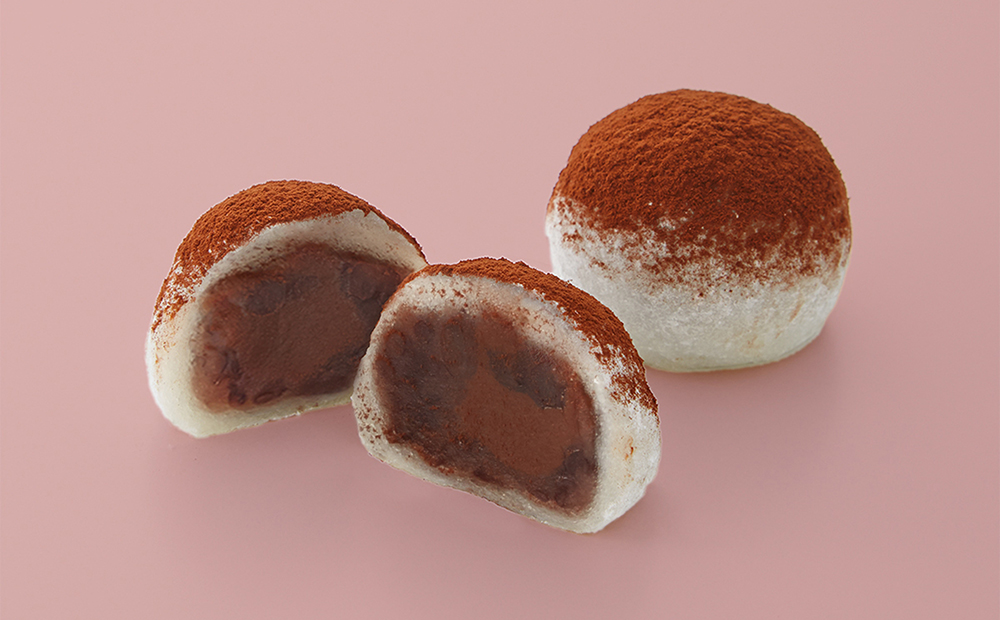 ほろ苦く仕上げたチョコレートガナッシュに粒餡をあわせたチョコレート餡をやわらかなお餅でつつみ仕上げました。別添えのココアパウダーで、チョコレートの味わいをよりゆたかにお楽しみいただけます。