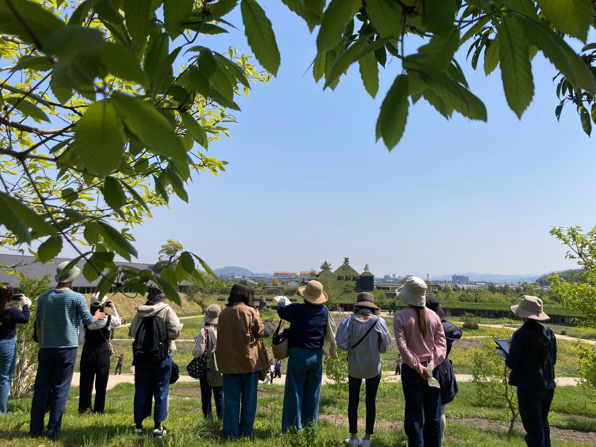一般のお客様は普段お入りいただけない非公開エリアからラ コリーナの森・里・湖(うみ)を眺め、今森氏が考える里山の森や生き物についてお話を聞きます。森の成長を願い、みんなで一緒に植樹をします。