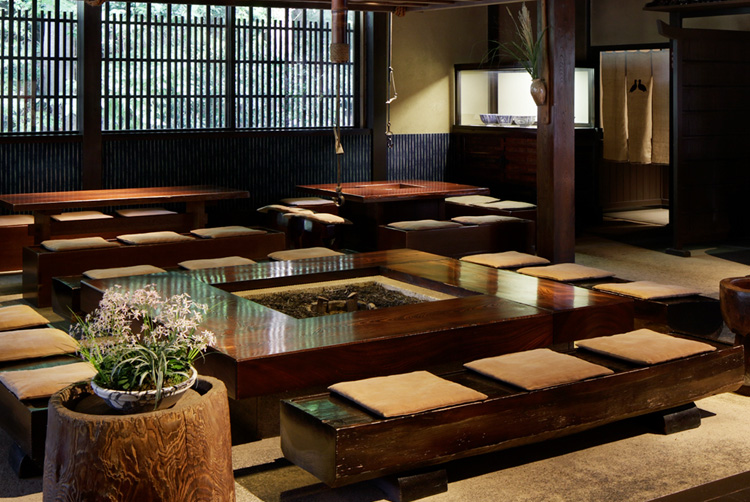 日牟禮八幡宮の境内のかたわら、町家造りの店舗は時間の流れもおだやかな和の空間。