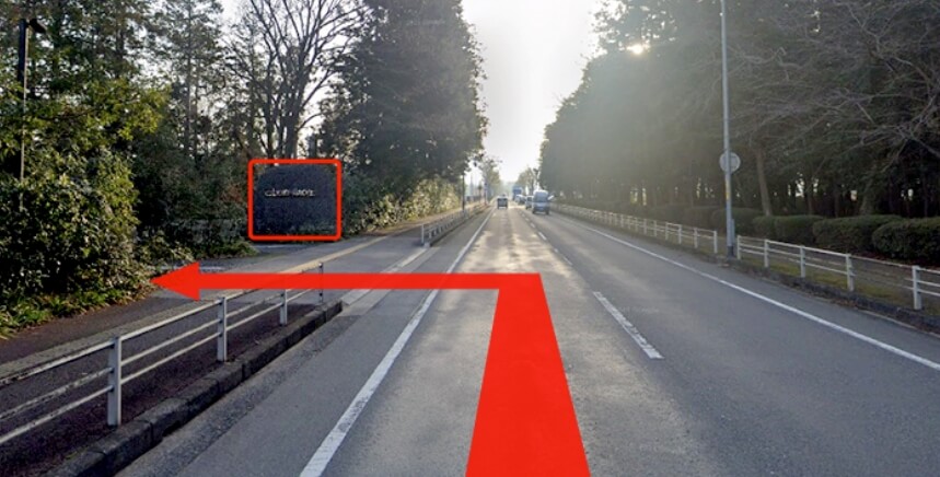 東近江警察署から約200メートル直進します。CLUB HARIEの看板を目印に、手前側が入り口になります。