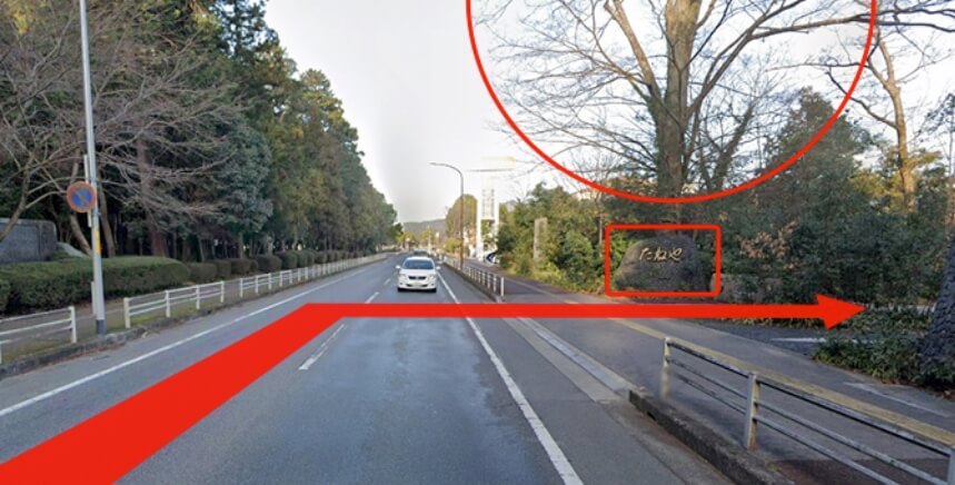たねやの看板と大きな木を目印に、奥側が入り口になります。