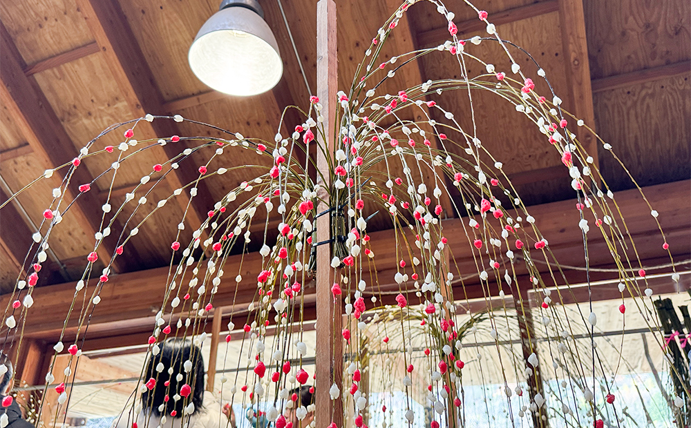 餅花とは枝などに白と赤の餅を丸めてつけた正月飾りで、五穀豊穣などを祈願する日本の伝統的な縁起物です。