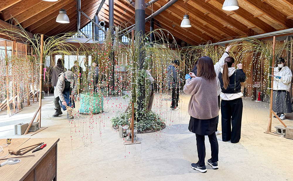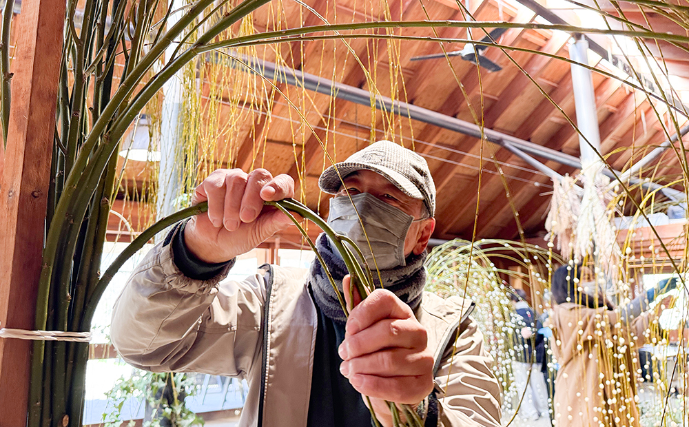 たねやでは店舗に飾る餅花を毎年スタッフが手作りしています。