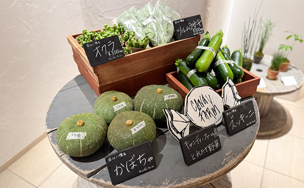 たねやグループの農業生産法人キャンディーファームがラ コリーナ敷地内の畑で、栽培期間中無農薬・無化学肥料で育てた野菜です。