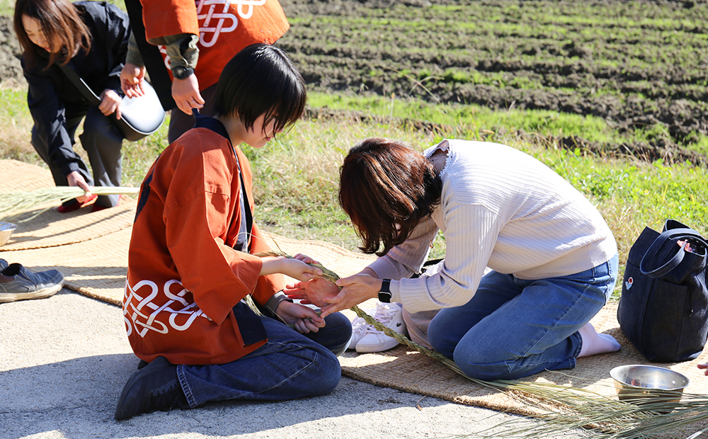 3年間しめ縄作りのスタッフを経験させていただき、毎年のことながら「嬉しさ」は特別な感情だなと思います。お客さまとともにしめ縄作りにチャレンジするなかで、お客さまとコツを発見したときの嬉しさ、完成したときの嬉しさは、何度味わっても共有しても特別で、ひとつひとつがとびきりの思い出として残っています。お持ち帰りいただき、飾られたしめ縄をふと見た時に、お客さまにとってこの体験がいつまでも嬉しさの香る体験であるといいなと思います。