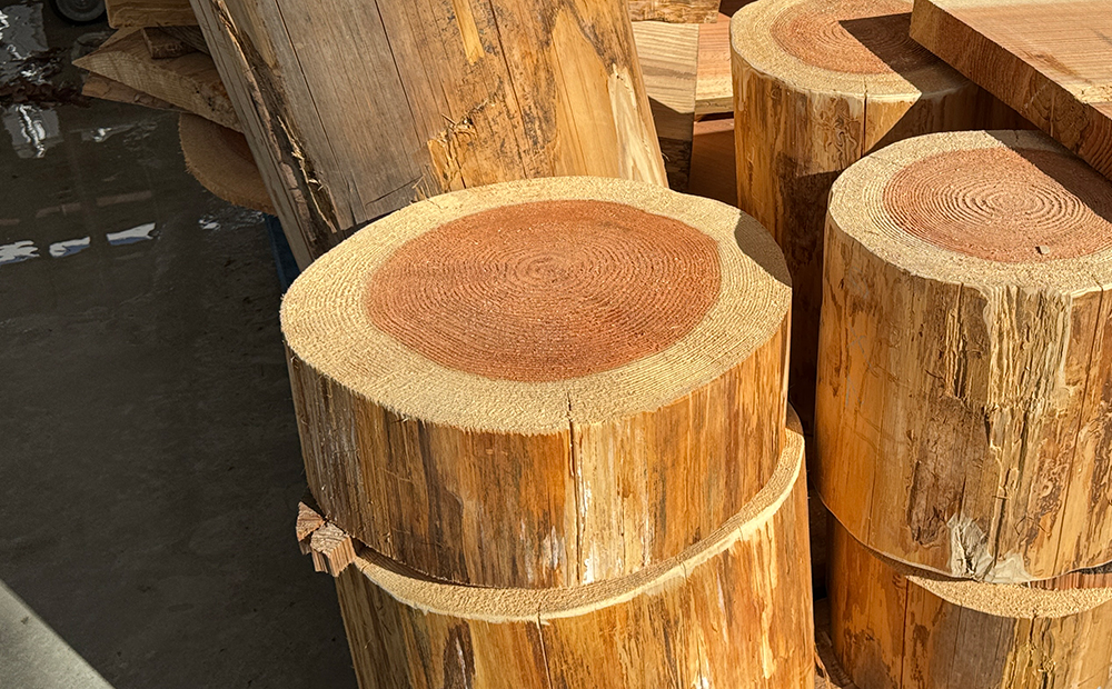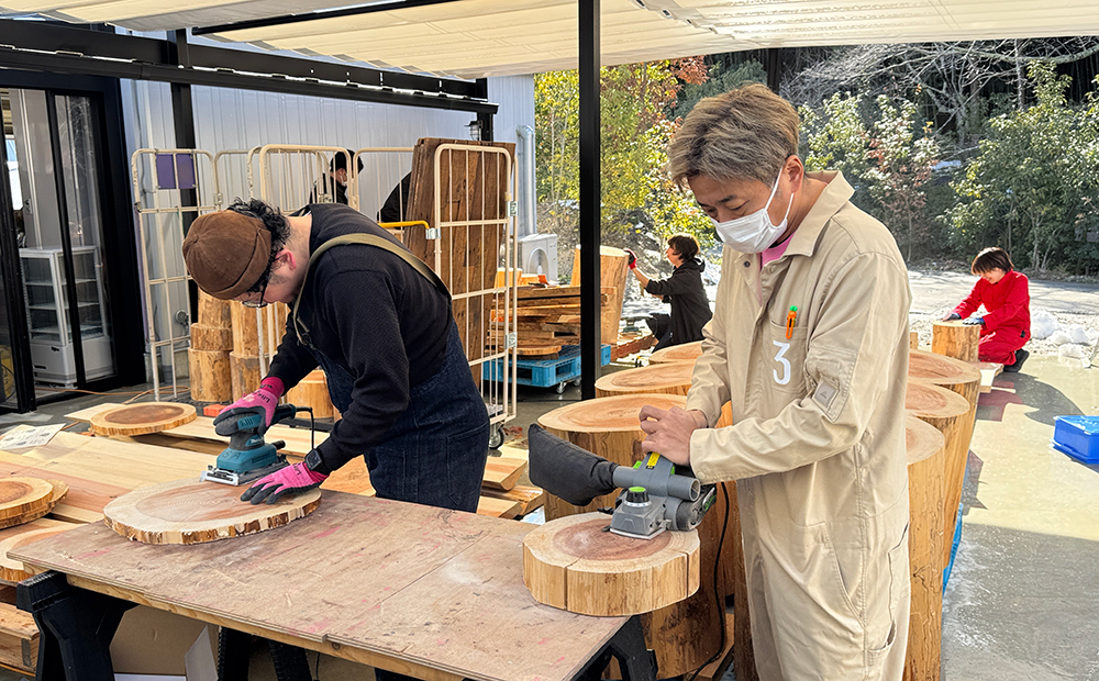 使用している切り株たちは、グランシェフ 山本をはじめ、スタッフが一つ一つ心を込めて仕上げたもの。