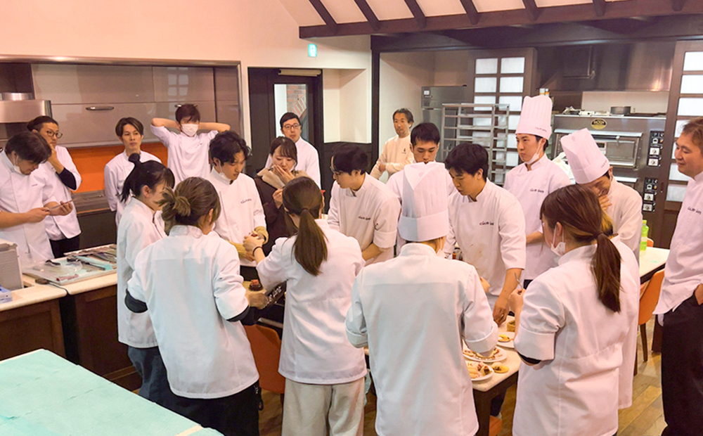 発表後は応募者全員で他の作品も試食しながら審査員の評価を聞くことで、今後の仕事や次回への糧として活かすことができる経験となりました。