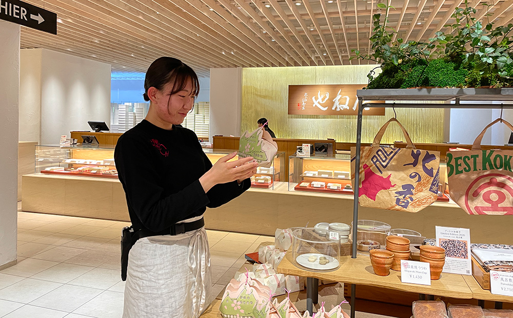 たねやに入社して2年目になる私は、普段ラ コリーナ近江八幡のメインショップで和洋菓子の販売をしています。