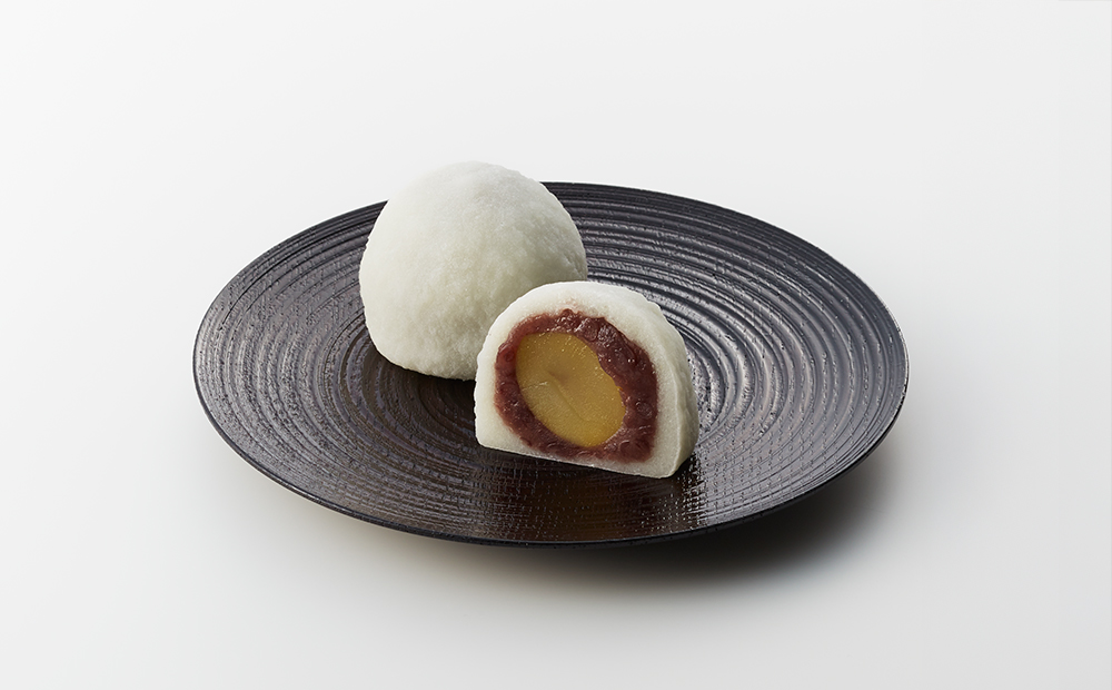 近江米をふんだんに使い、粗搗きした餅の中に、瑞々しい粒餡と栗を一粒丸ごと入れ、歯切れのよい大福に仕上げました。 素材の持ち味そのままに、昔ながらの素朴な味わいをお楽しみいただける大福です。