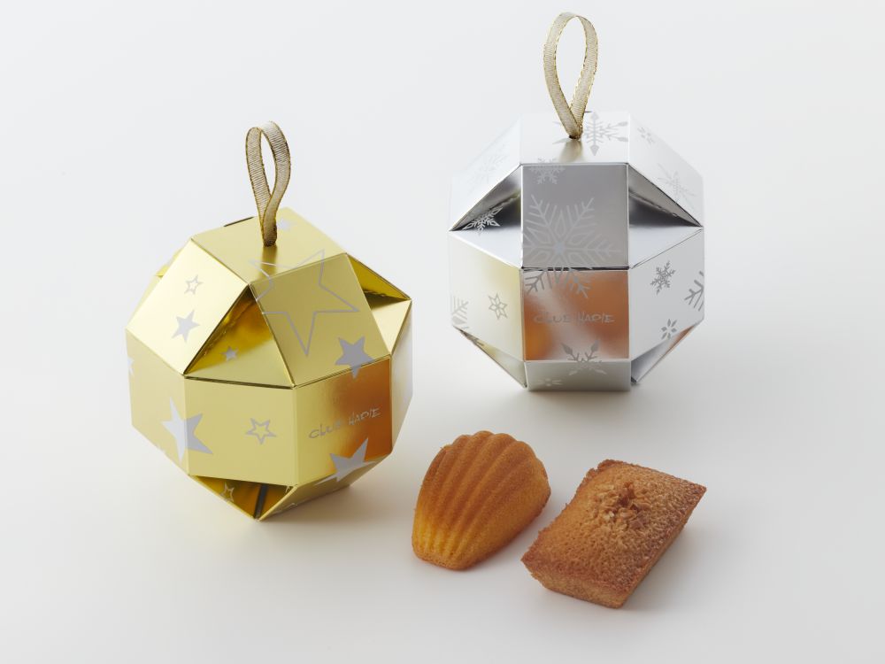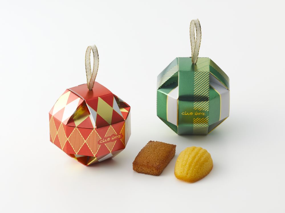 クラブハリエ定番の焼き菓子、フィナンシェとマドレーヌの詰合せを期間限定のパッケージでお届けしています。オーナメントをモチーフにしたデザインとともにお楽しみください。