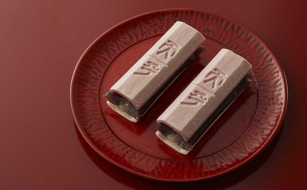米どころ近江の糯米を使った最中種で、求肥入りの餡をはさんでお召し上がりいただく手づくり最中です。紅白の最中種でおめでたく仕上げました。