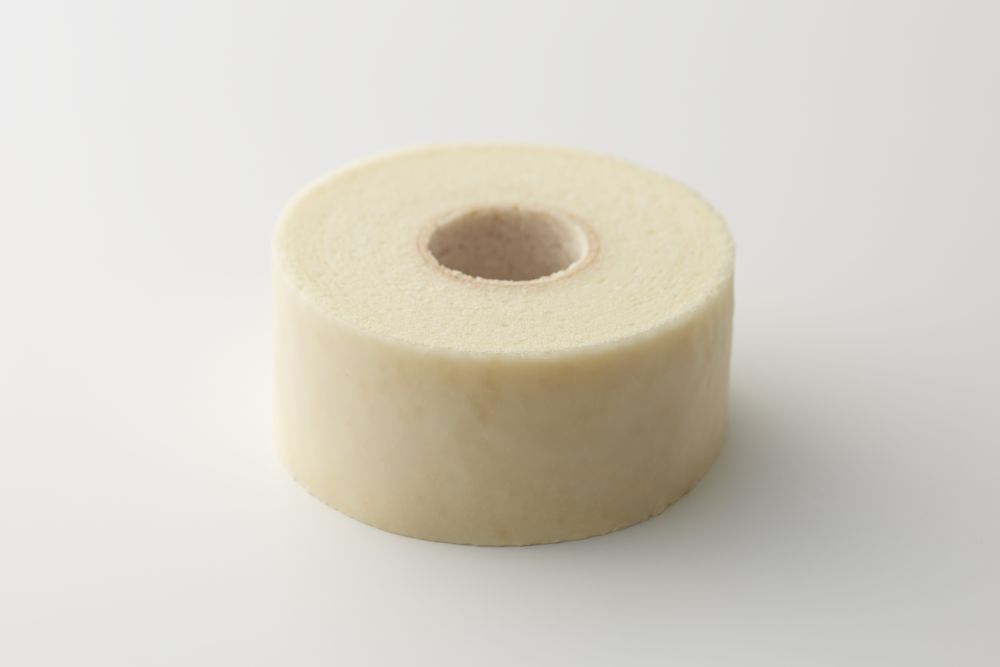 白いバターと黄身まで白い卵を使い、やさしい白さに仕上げたバームクーヘンです。