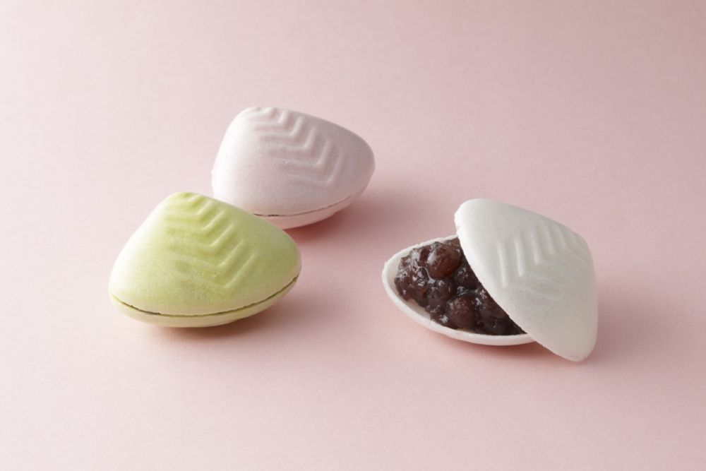 貝に描かれた絵や歌をあわせる「貝あわせ」の遊びをうつした手づくり最中です。春らしい色に染めた最中種で粒餡をはさんでお召し上がりください。