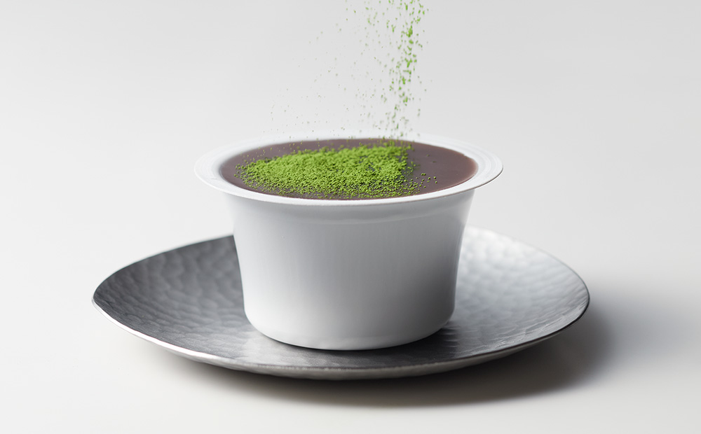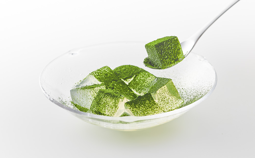 「土山抹茶」の爽やかな苦味と旨味を最大に活かすため、「本生羊羹」「たねや寒天」ともにお召し上がりの直前に別添の抹茶をかけていただく形でお届けします。袋を開けた瞬間の香りと鮮やかな色。こだわりの羊羹や寒天と調和する奥深い味わい。