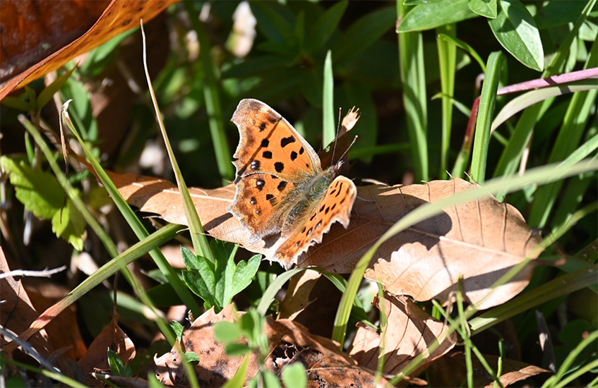スイセンを植え、蝶の幼虫の越冬場所に。