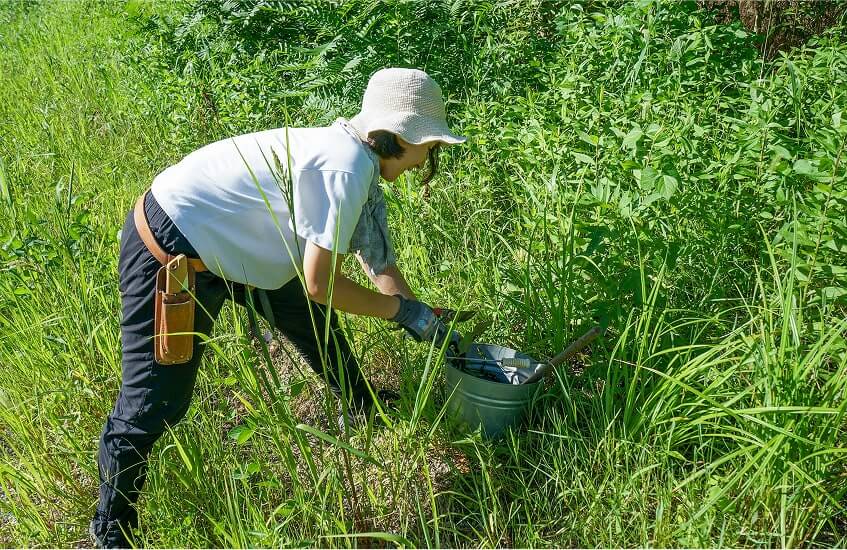 みるみる背が高くなる草を刈ることで、多様な生き物が棲む草地の管理方法を学びます。