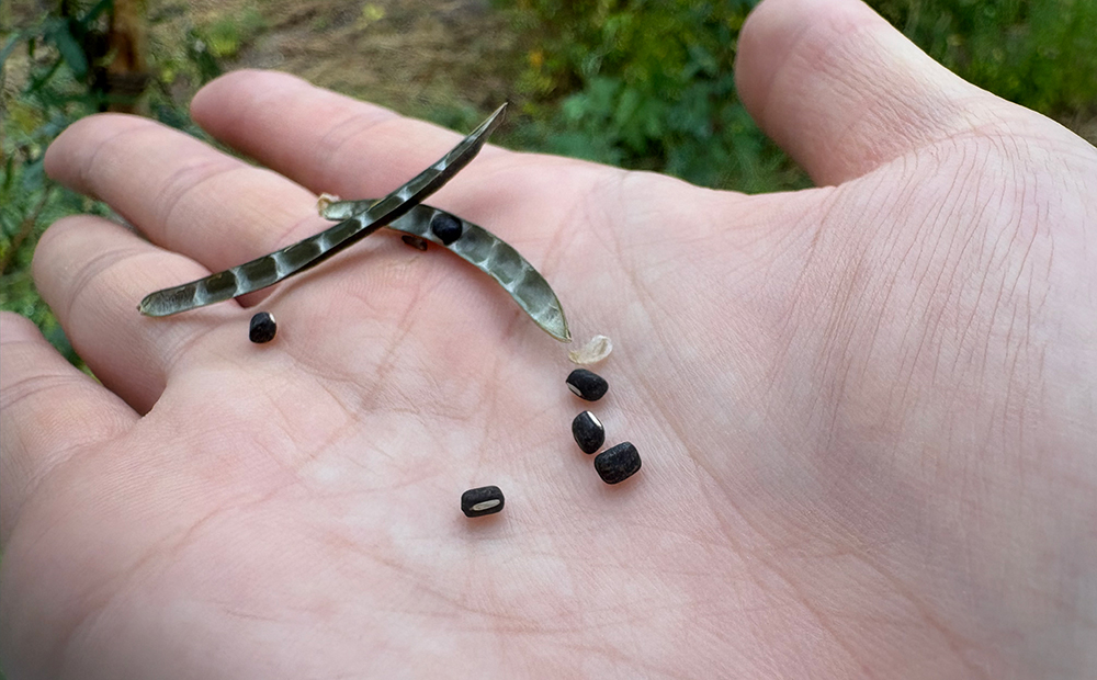 ちなみにヤブツルアズキは、和菓子に使われる餡子の原料「小豆」の原種であると言われています。熟した実から出てきた種は、確かに小豆にそっくりです。