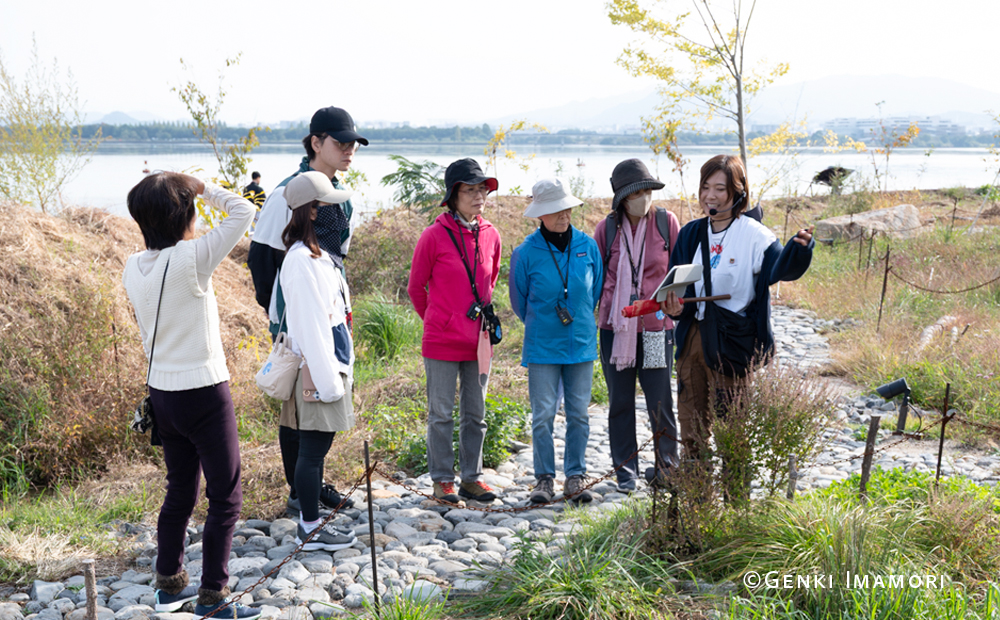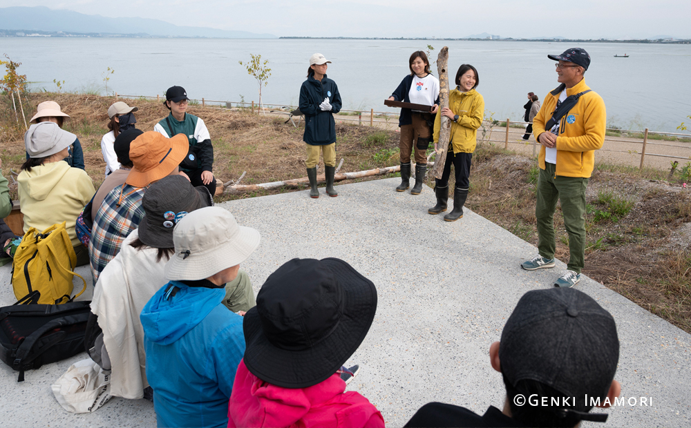 初めてご参加くださったお客様には「琵琶湖の森」で里山の環境を作っていることや、生き物を呼び戻すための工夫についてお話をさせていただきました。