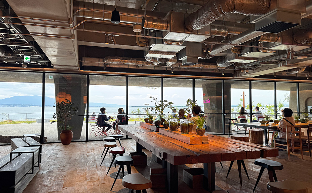 冬の琵琶湖をご覧いただきながら、「たねやパイ」をどうぞ。