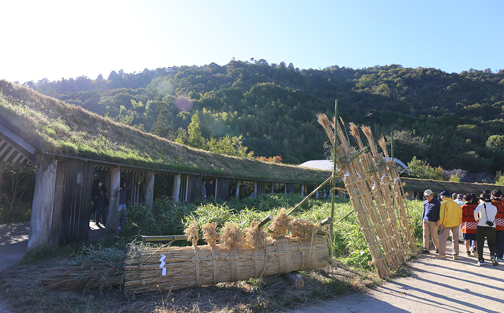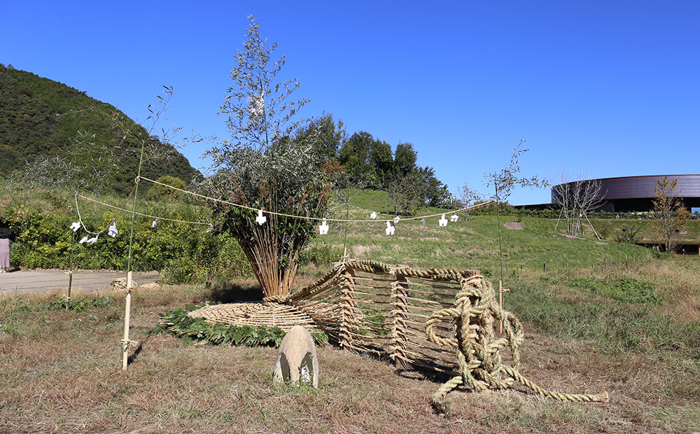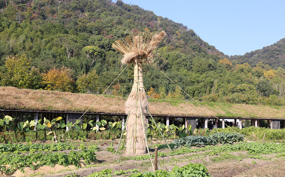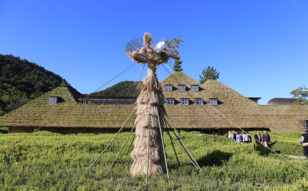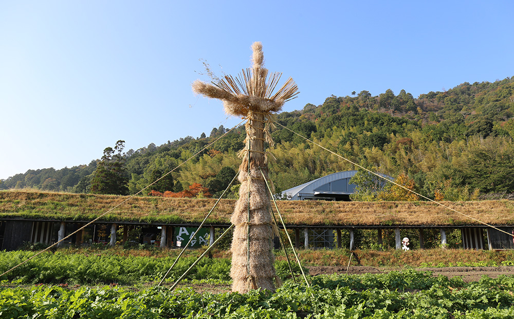 近江八幡市内では毎年3月から5月にかけて市内各地で、200基を超える松明を結い奉納する祭りが行われます。1000年以上の歴史を持つ近江八幡の伝統文化をお客様そして、地域のみなさまにも知っていただきたい。そんな想いから「文化遺産としての松明を次世代へ贈る会」や各町の方々とともに、2016年よりラ コリーナ近江八幡の敷地内で松明展示を行っています。