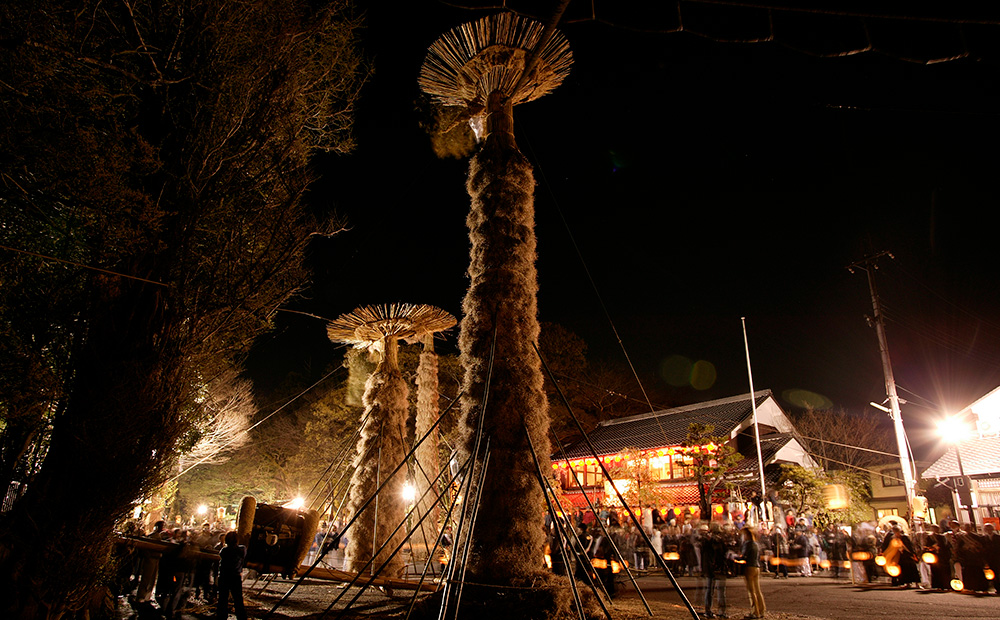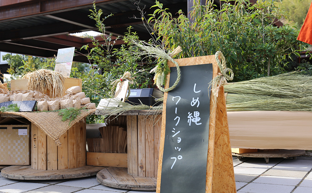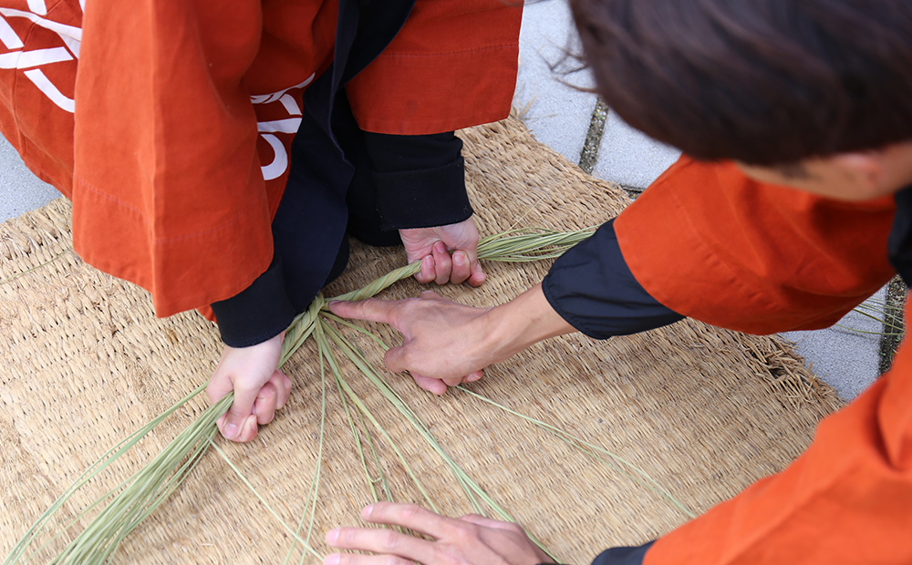 近江八幡市内の5町が松明(たいまつ)を制作・展示し、毎年ご好評いただくしめ縄のワークショップを行います。