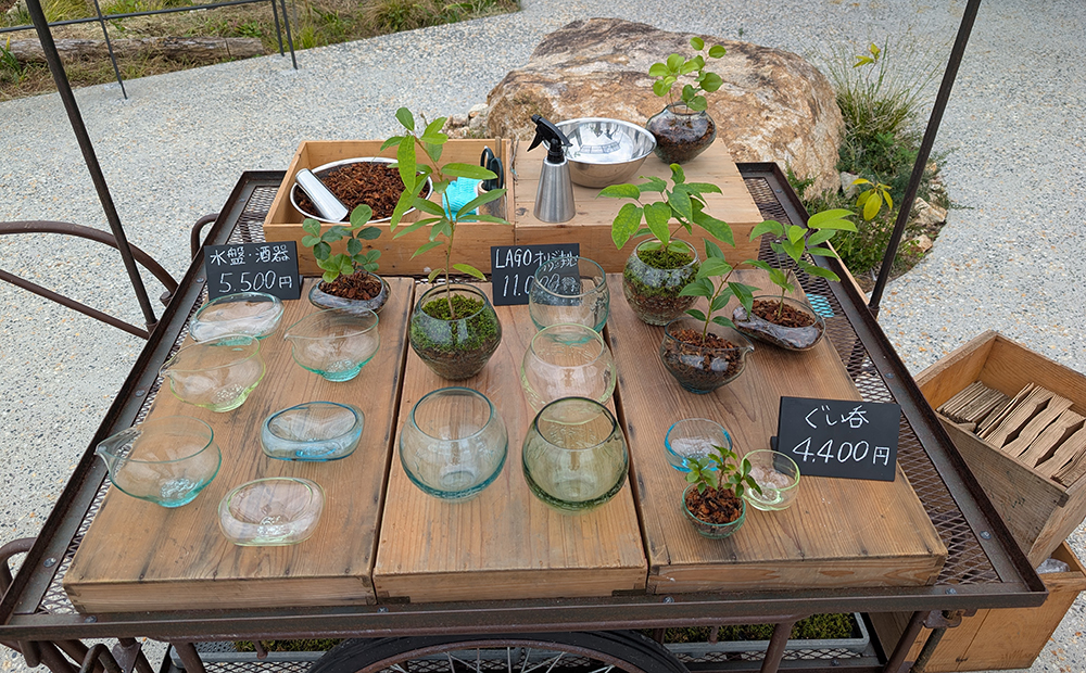 ガラス作品・苗木ともに一つとして同じものがないので、ご自身だけの寄せ植えが完成します。