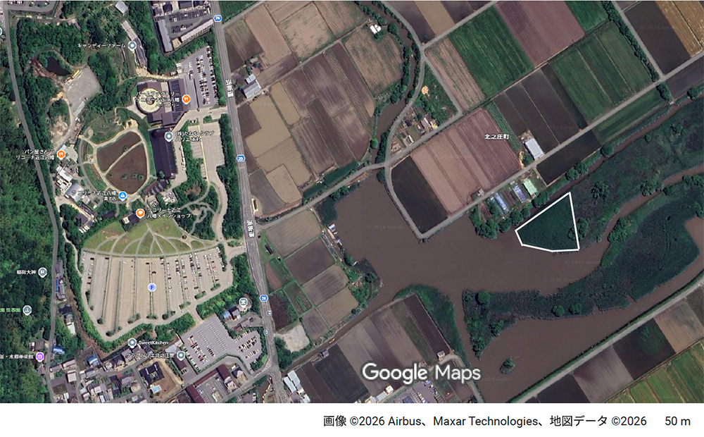 ▲⽩枠線内ヨシ刈り ⾯積 3,800㎡