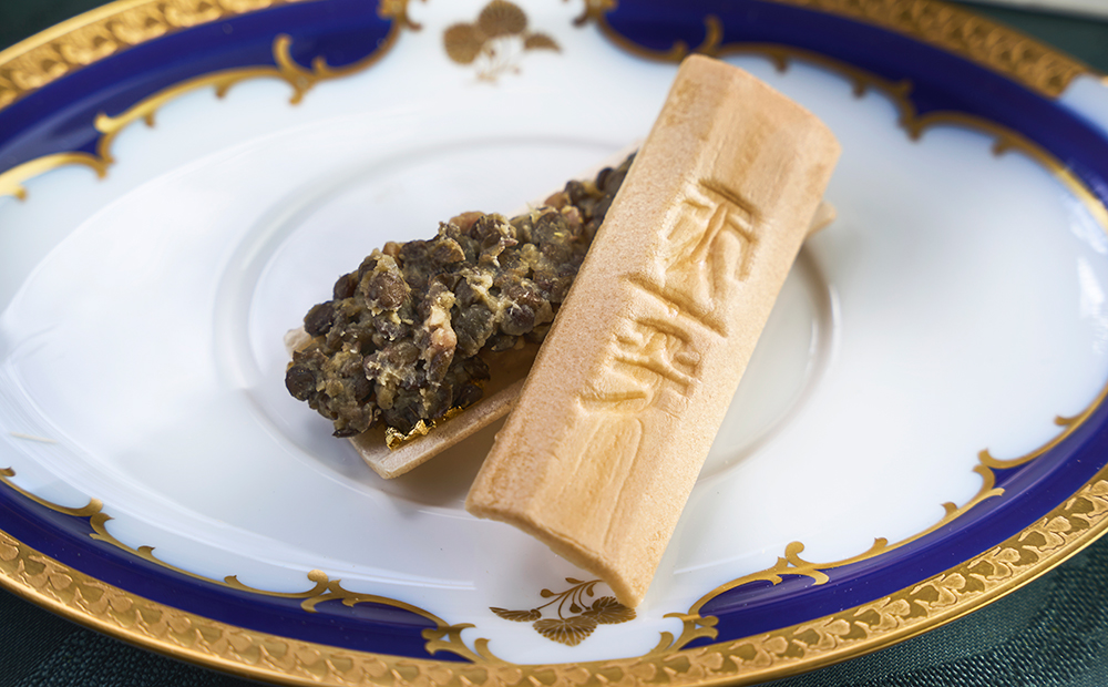 たねや ふくみ天平の最中種を使用したベーコンとレンズ豆の煮込みの最中