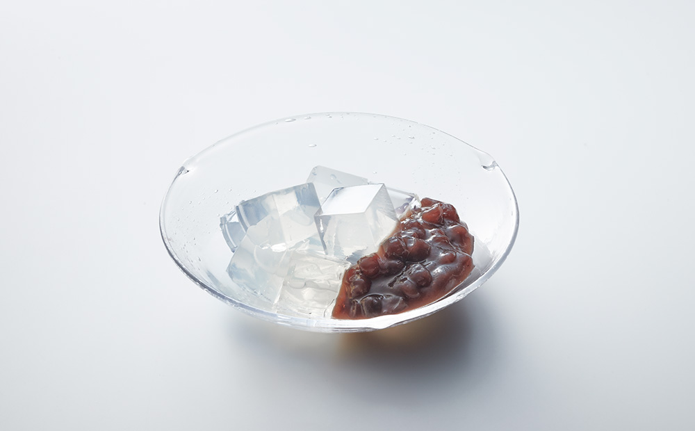 口のなかでくずれる瞬間の美味しさにこだわった寒天。職人が炊きあげたなめらかな餡を合わせてお召し上がりいただく涼菓です。