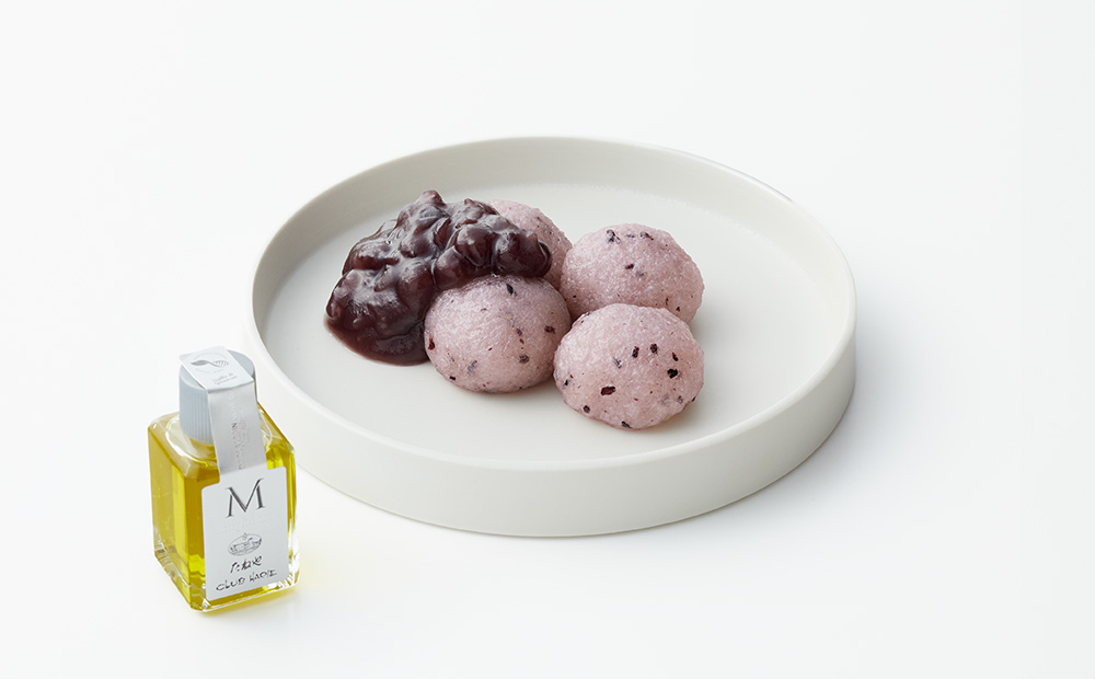 近江米を使い、赤糯米、黒糯米を合わせたお餅に、瑞々しいたねやの餡。 さわやかな風味のオリーブオイルをかけてお召し上がりください。