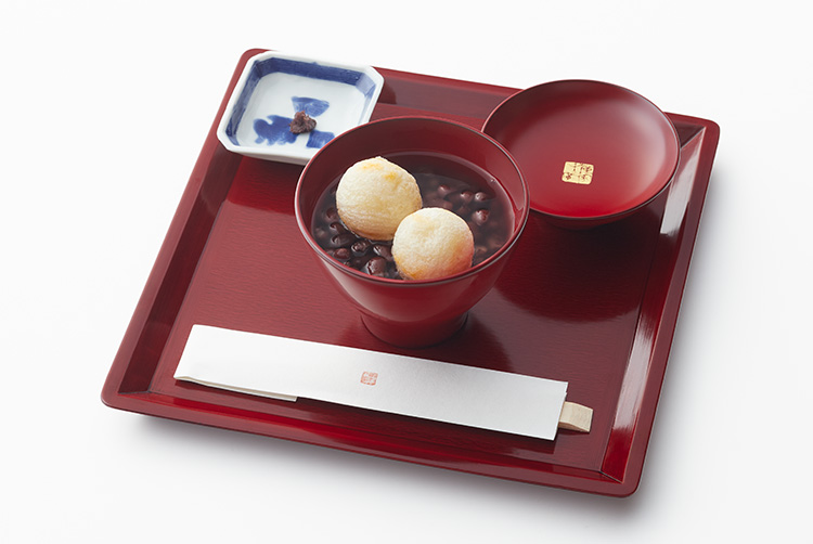 北海道産小豆を風味豊かにふっくらと炊き上げました。ほんのり焼いたつぶらなお餅と一緒にお楽しみください。